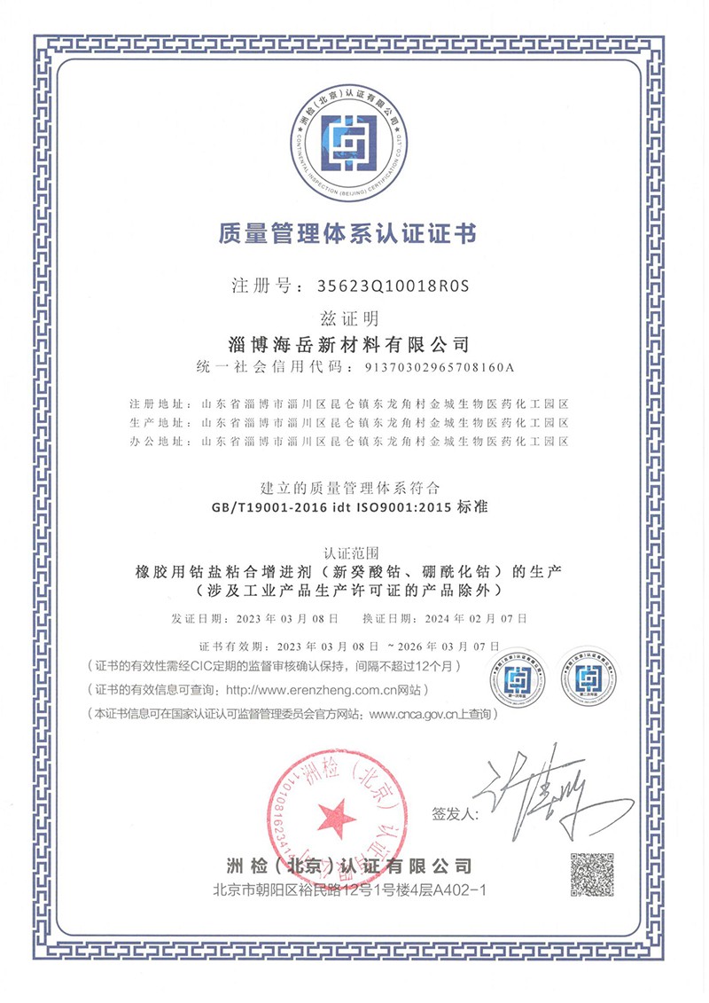新癸酸鈷、硼?;挕⑾鹉z鈷鹽粘合劑找:淄博海岳新材料有限公司
